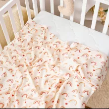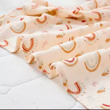 This swaddle blanket combines style, softness, and practicality to make caring for your baby a joy. With a charming printed pattern, it’s as beautiful as it is functional. The lightweight muslin fabric allows air to circulate, helping to regulate your baby’s temperature through all four seasons. Generously sized at approximately 47 x 47 inches, it offers plenty of room for swaddling, covering, or cuddling.