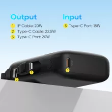 - Built-in Cables: No need to carry extra wires; comes with integrated Type-C and Lightning cables.