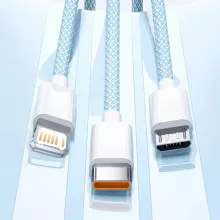 With its triple-connector design, this cable is engineered to meet all your charging needs. Equipped with USB A to Lightning, Type-C, and Micro USB connectors, it works perfectly with Samsung smartphones, iPhones, Xiaomi devices, and many more. No need to carry multiple chargers—this single cable does it all!