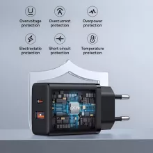 With 20W of power and support for PD 3.0 and QC 3.0 fast charging protocols, this charger delivers lightning-fast charging speeds. It can take your iPhone 15 to 59% in just 30 minutes, making it ideal for quick top-ups before heading out. Dual USB ports allow you to charge two devices simultaneously, while its advanced temperature control keeps your gadgets safe and cool during charging.