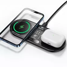 Say goodbye to clutter and tangled cords with this sleek 20W Dual Wireless Charger. Designed for Apple devices, including iPhone, AirPods, and other compatible models, this charger brings fast, efficient charging to your everyday routine. Its dual charging pads allow you to power up two devices simultaneously, eliminating the need for multiple chargers. Whether you need to charge your phone or earphones, this compact pad offers a simple, high-speed solution with a modern design.
