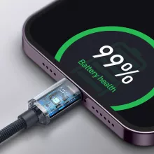 This USB Type-C to Lightning cable is packed with features that make charging and data transfer quicker, safer, and more efficient. The crystal shine series provides a sleek, stylish design, and the upgraded connectors ensure secure, stable connections every time. It also offers excellent durability with reinforced protection, so you can count on it to withstand everyday wear and tear. With its smart temperature control and thickened copper cores, this cable ensures your devices stay safe while charging at high speeds.