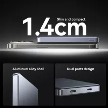 - Sleek and Durable Design: Crafted from high-quality aluminum alloy and PC materials, this power bank combines a lightweight, modern aesthetic with durability.