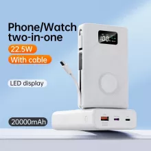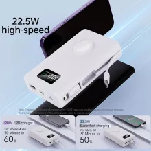 Stay powered on the go with this high-performance 22.5W 20000mAh Power Bank, designed specifically to meet the needs of Samsung users. Whether you’re tackling a busy day or embarking on an exciting adventure, this portable charger ensures your devices are always ready when you need them. With cutting-edge fast-charging technology, built-in cables, and multiple charging modes, it’s the ultimate power solution for your Samsung smartphone, watch, or earbuds.
