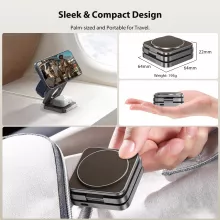 - Magnetic and Foldable Design: A compact, lightweight design that folds flat or stands upright for versatile use, perfect for travel or desk organization.