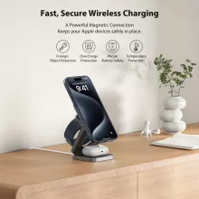 - 3-in-1 Wireless Charging: Power up your iPhone, Apple Watch, and AirPods simultaneously with fast and efficient wireless charging.