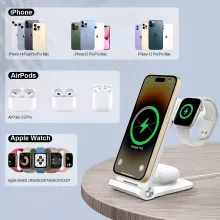 Eliminate the clutter and upgrade to a smarter, all-in-one solution with the 3-in-1 MagSafe Wireless Charger Stand. Keep your iPhone, Apple Watch, and AirPods powered simultaneously with fast, secure, and stylish charging. Simplify your life and order yours today!