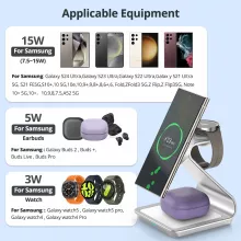- Fast Charging: Up to 15W for Samsung phones, 3W for Galaxy Watches, and 5W for Galaxy Earbuds.