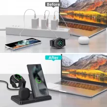 Streamline your charging experience with the 3-in-1 Wireless Charger Dock, specially designed for Samsung devices. Whether you need to power up your Samsung Galaxy S24, Galaxy Watch 7, or Buds Pro, this versatile charging station does it all. Say goodbye to cluttered cables and hello to a sleek and organized charging solution that keeps all your essentials powered and ready to go.