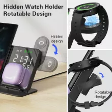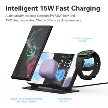 The 3-in-1 Wireless Charging Dock is packed with features to make charging easier and more convenient than ever. From fast charging capabilities to its integrated holder design, this stand provides an unmatched charging experience for your Samsung devices.