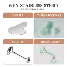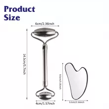 This set includes two powerful tools crafted from 304 stainless steel, known for its durability and non-reactive properties. The facial roller helps gently massage the skin, while the Gua Sha tool provides a deeper, more targeted treatment for specific areas like the jawline, neck, and under the eyes.
