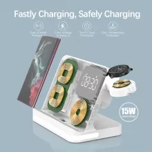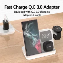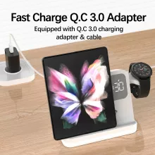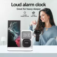 Say goodbye to tangled wires and cluttered countertops with the 6-in-1 Wireless Charging Stand. Designed specifically for Samsung devices, this sleek charging dock is a must-have for those who value convenience, style, and efficiency. It’s your all-in-one solution for charging Samsung phones, Galaxy watches, and wireless earbuds, while also doubling as a functional bedside companion with an alarm clock and LED light. Perfect for home, office, or travel, this charging stand simplifies your tech life.