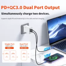 - Dual Ports: One USB-C and one USB-A port to charge multiple devices simultaneously.
