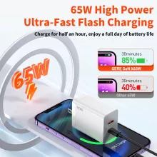 This 65W GaN charger is not just another adapter – it’s a game changer for Samsung users. Thanks to its innovative GaN technology, it provides more power in a smaller size, reducing bulk while maximizing charging efficiency. Its compatibility with various fast-charging protocols ensures that your Samsung devices charge quicker than ever. Whether you’re powering up your Galaxy phone, tablet, or even a laptop, this charger has you covered.