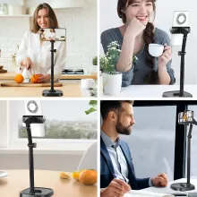 Whether you’re recording your next viral recipe, setting up an overhead shot for a video tutorial, or simply keeping your phone within easy reach on your desk, this stand is your go-to solution. Its thoughtful design covers all-around viewing angles, making it a versatile addition to any environment.