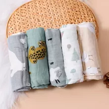 Wrap your little one in gentle comfort with this 5-piece muslin swaddle and burp cloth set. Made from a premium blend of 70% bamboo and 30% cotton, each square cloth is luxuriously soft, breathable, and perfect for delicate newborn skin. Measuring 23.6 x 23.6 inches, these versatile cloths are large enough for swaddling, burping, wiping, or as a light blanket. With adorable animal prints, they bring charm to every moment while making baby care easier and more enjoyable.