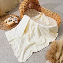 This lightweight yet cozy blanket is thoughtfully crafted to keep your baby warm in the cooler months and comfortably cool during warmer days. Its double-sided design gives you two looks in one, while the breathable crepe weave helps regulate temperature naturally, preventing overheating. Ideal for cuddling, swaddling, stroller rides, nap time, or as a soft surface for tummy time.