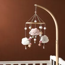 Turn your little one’s crib into a dreamy wonderland with this charming baby crib mobile. Featuring a delightful mix of wooden rattles and plush felt clouds and stars, this hanging toy isn’t just adorable – it’s designed to support your baby’s development while bringing soothing comfort. Measuring approximately 9.8 x 9.8 x 3.9 inches, it fits perfectly over a crib, creating a calming space for rest and play.