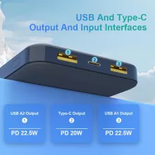 - Dual Output Interfaces: Equipped with USB-A and USB Type-C outputs for versatility and convenience.