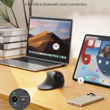What sets this mouse apart is its unique combination of ergonomic design and advanced features. The vertical orientation of the mouse promotes a more natural hand position, helping reduce wrist and forearm strain that often comes with prolonged computer use. Its dual-mode wireless connection offers the flexibility to connect to multiple devices, while the silent click and jiggler features ensure a smooth, quiet, and uninterrupted working experience. The rechargeable power system eliminates the need for constant battery replacements, and the adjustable DPI settings give you the precision you need for a variety of tasks. Whether you’re a creative professional, office worker, or casual user, this mouse is designed to provide comfort, precision, and reliability in every click.