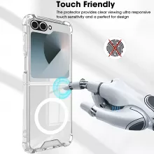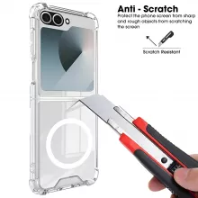 The Flip6 Magnetic Clear Case is built for modern functionality. Its magnetic feature enhances usability, allowing it to pair effortlessly with MagSafe wireless chargers and magnetic accessories. The crystal-clear design highlights the Galaxy Z Flip 6’s unique aesthetics while offering shockproof protection, ensuring your phone remains as stunning as it is secure.