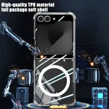Safeguard your Samsung Galaxy Z Flip 6 with the Flip6 Magnetic Clear Case. This sleek and transparent protective cover combines style and durability, ensuring your device stays safe from everyday bumps and scratches. Designed with MagSafe compatibility, it supports seamless wireless charging, making it the perfect companion for your cutting-edge smartphone.