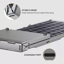 Whether you’re working in a coffee shop, attending a meeting, or relaxing on your couch, this foldable Bluetooth keyboard is the ultimate typing companion. Its sturdy construction and stable non-slip base make it ideal for use on various surfaces, from desks to airplane tray tables. The rechargeable battery ensures you’re always powered up and ready to work, wherever life takes you.