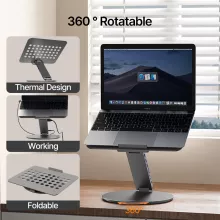 This laptop stand is the ultimate blend of style and functionality. Its foldable design and 360° rotating base make it perfect for both individual use and collaborative work. Crafted from high-quality aluminum alloy, it offers exceptional durability while ensuring efficient heat dissipation. Whether you’re editing videos, sharing ideas in a meeting, or streaming your favorite shows, this stand is your go-to solution.
