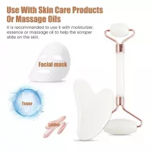 Incorporate the Gua Sha Roller & Scraping Board Set into your nightly skincare routine to unwind and de-stress before bed. For optimal results, use it 2-3 times a week after applying your favorite facial cream. Massage your forehead, cheeks, lips, neck, and eyes from bottom to top for 5-10 minutes, then rinse with water to reveal a refreshed and rejuvenated complexion.
