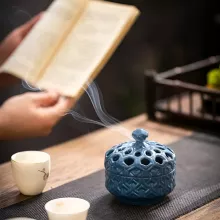 This exquisite incense holder measures approximately 3.7 inches by 3.7 inches, offering a compact yet eye-catching presence. Available in soothing colors like green, blue, and brown, it blends seamlessly with various decor styles. Crafted with strong frost resistance and durability, the ceramic material ensures long-lasting use. Its hollow structure is specially designed to create the captivating backflow effect, where smoke gently flows downward, creating a calming visual experience.