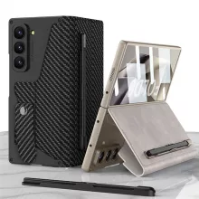Elevate your Samsung Galaxy Z Fold 6 experience with this premium leather wallet case. Designed to provide exceptional protection and added functionality, it features a card slot, pen holder, kickstand, and built-in glass screen protection. Perfect for professionals and tech enthusiasts, this case is the ultimate blend of style and practicality.
