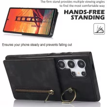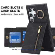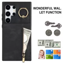 Combine style, functionality, and protection with this premium leather zipper wallet case for the Samsung Galaxy S24 Ultra 5G. Designed to meet the demands of your busy lifestyle, this case features a card slot, storage compartment, and a 360-degree ring kickstand. Its shockproof design keeps your phone safe, while the elegant leather finish adds a touch of sophistication to your everyday carry.