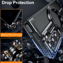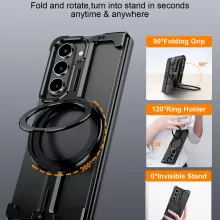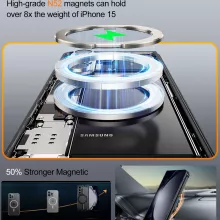 This case is designed specifically for Samsung Galaxy Z Fold 5 and Z Fold 6, ensuring a precise fit and superior performance. Its magnetic aluminum alloy construction offers the perfect balance of durability and style, while the lightweight design ensures easy handling. The frameless, slim profile maintains the phone’s modern look, and the addition of practical features like a built-in kickstand and wireless charging compatibility makes it a true all-in-one solution.