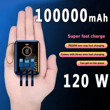 Keep your Samsung devices charged and ready with this high-capacity 100000mAh portable power bank. Designed for convenience and reliability, this power bank features built-in USB Type-C cables and supports two-way super-fast charging, ensuring your devices are powered up quickly whenever you need them. Compact yet powerful, it’s the ideal companion for busy days, travel, and emergencies.
