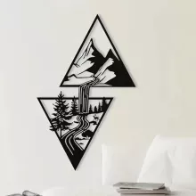 Transform your living space with the striking elegance of this Nordic Mountain Scene Metal Wall Art. Crafted from high-quality iron and designed in a sleek triangular silhouette, this piece captures the serene beauty of mountain peaks in a minimalist, modern style. Its clean black finish and precise detailing make it a stunning statement piece that blends seamlessly with a variety of interior designs, from contemporary to rustic.