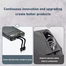 - All-in-One Solution: Built-in cables mean no more tangled wires or forgotten cords.