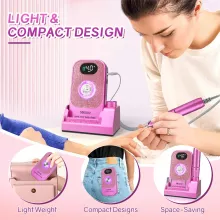 This nail drill is built to deliver efficiency, comfort, and convenience. With its cordless design, lightweight build, and rechargeable battery, you’ll enjoy freedom of movement without tangled cords or interruptions. Its quiet motor and low vibration ensure a comfortable experience every time.