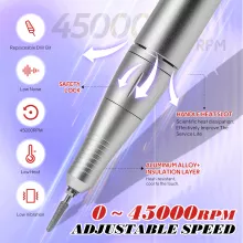 Upgrade your manicure and pedicure routine with this professional 45000RPM nail drill machine. Designed for both personal and professional use, it combines style, efficiency, and performance in one sleek package. Make every nail session smooth, easy, and enjoyable. Add it to your nail care essentials today and achieve stunning nails anytime you want!
