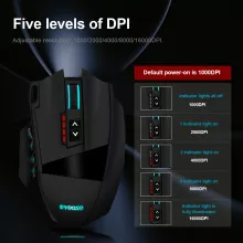 - Customizable DPI: Instantly switch between 1000, 2000, 4000, 8000, and 16000 DPI levels or fine-tune sensitivity by increments of 100 through software.