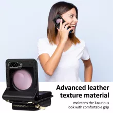 Upgrade your phone’s protection and style today. This leather zipper flip wallet case is the ultimate accessory for your Samsung Galaxy Z Flip. Order yours now and experience the perfect blend of functionality and fashion.