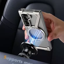 This phone case is crafted with a premium metal texture that feels like bare metal in your hands, offering a refined aesthetic. Featuring a built-in 360° rotating magnetic stand, it effortlessly transitions from a protective cover to a hands-free stand for video calls, movie marathons, or presentations. Its anti-scratch and shockproof design ensures your phone stays safe from accidental drops and scratches, while the borderless design complements the folding screen for a seamless look.