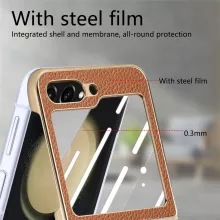 Perfect for daily use or on-the-go lifestyles, this case is designed specifically for Samsung Z Flip 6 and Z Flip 5 models, ensuring a snug and secure fit. Whether you’re taking calls, streaming videos, or charging wirelessly, it combines convenience with luxury. The tempered glass protection keeps your small screen flawless, while the leather material delivers a premium feel that complements your phone’s design.