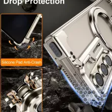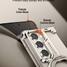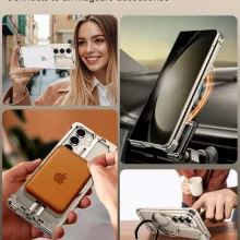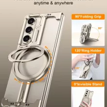 This magnetic phone case is tailored to meet the needs of Samsung Galaxy Z Fold users, combining robust protection with stylish functionality. Its aluminium frame offers superior durability while keeping your phone lightweight and easy to handle. The integrated ring and kickstand add unmatched versatility, making it perfect for work, travel, or leisure.