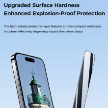 What sets this screen protector apart is its combination of ultra-clear HD transparency and advanced protective features. The anti-fingerprint coating and anti-dust net ensure your device remains as spotless as it is functional, while the full coverage design provides maximum protection for your phone’s screen. Its slim and durable construction ensures a seamless fit, allowing you to enjoy your iPhone’s premium design without compromise.
