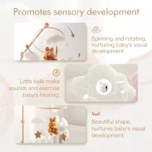 Create a peaceful and enchanting atmosphere for your little one with our Wooden Baby Crib Mobile. Featuring adorable soft felt cartoon bears and soothing music, this mobile helps your baby relax and drift into sweet dreams. The natural wooden frame adds a warm, timeless charm to any nursery, while the playful design sparks your child’s curiosity and imagination.