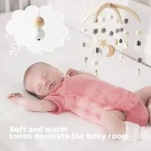 Transform your little one’s crib into a dreamy world of sights and sounds with this charming Wooden Baby Crib Mobile. Designed for newborns up to 12 months, this mobile combines soft non-woven elements, gentle wooden accents, and soothing melodies to create a calming environment for rest and play. The adorable hanging stars and shapes gently rotate above your baby’s head, capturing their attention and sparking curiosity while encouraging early sensory development.