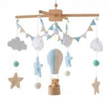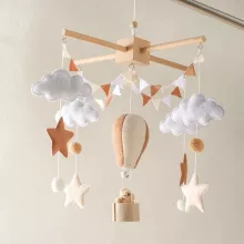 Turn your baby’s crib into a dreamy wonderland with this beautifully crafted Wooden Baby Crib Mobile. Featuring soft felt hot air balloons, cheerful cartoon sheep, twinkling stars, and a soothing moon, this mobile creates a calming visual and auditory experience. The gentle rotation and soft musical chimes help your little one relax, encouraging restful naps and peaceful nights.