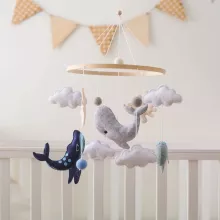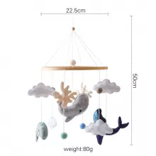 Transform your baby’s nursery into a serene ocean paradise with this charming Wooden Baby Crib Mobile. Featuring soft felt whales, scallops, and clouds, this mobile is more than just decoration — it’s a soothing companion that captures your little one’s attention and sparks their imagination. With its gentle motion and adorable marine designs, it’s perfect for helping babies relax before sleep or keeping them engaged during playtime.